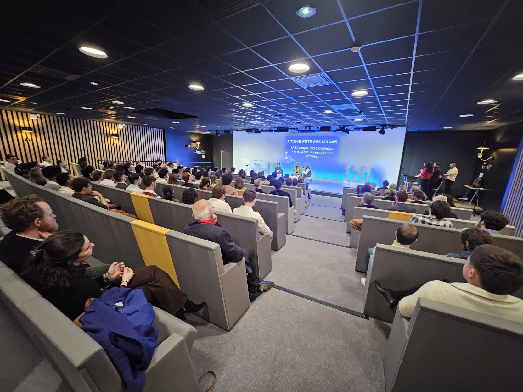 En fin de journée, toute la communauté des ESME (bureau de l'AIESME, diplômés, étudiants, personnel de l'école, entreprises locales partenaires) s'est retrouvée dans l'amphithéâtre du campus de Lyon pour une soirée exceptionnelle à l'occasion des 120 ans de l'ESME !